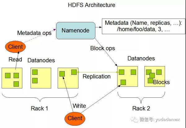 HDFS是Google GFS的开源实现,是一个分布式文件系统,是大数据技术的基石,直接上架构图: