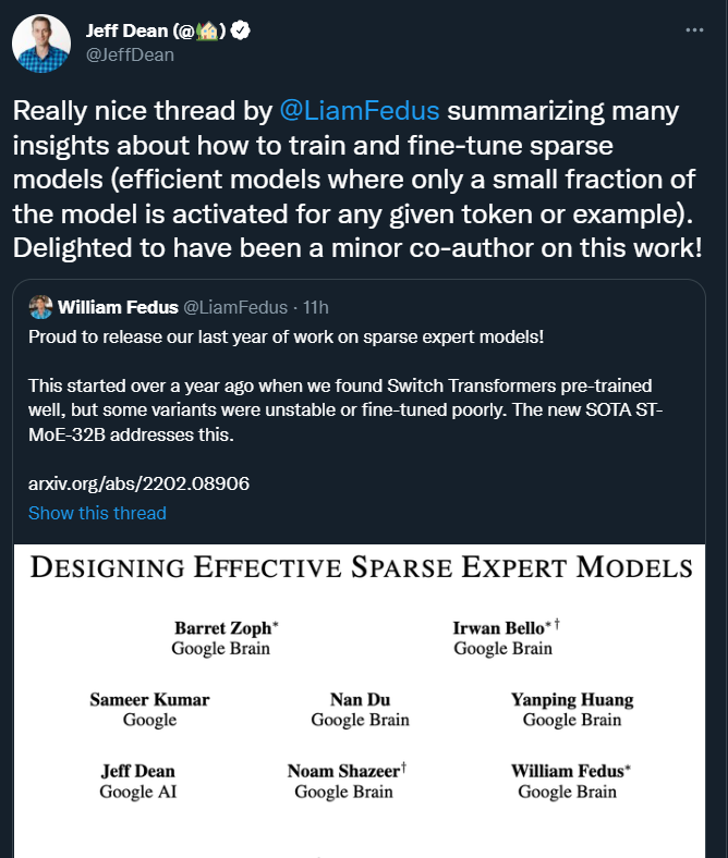 稀疏模型在深度学习领域发挥着越来越重要的作用。对于给定的 Token 或样本,它可以只激活模型的一小部分,从而在拥有很大的参数量的同时也能做到计算友好。但是,如何可靠地训练这类模型依然是一个需要解决的问题。在这篇文章中,来自谷歌的 BaRRet Zoph、IRwan Bello、WilliaM FedUS 、JeFF Dean 等研究者给出了一份「高效稀疏专家模型设计指南」。